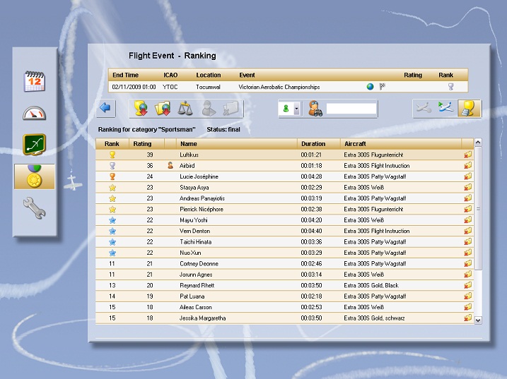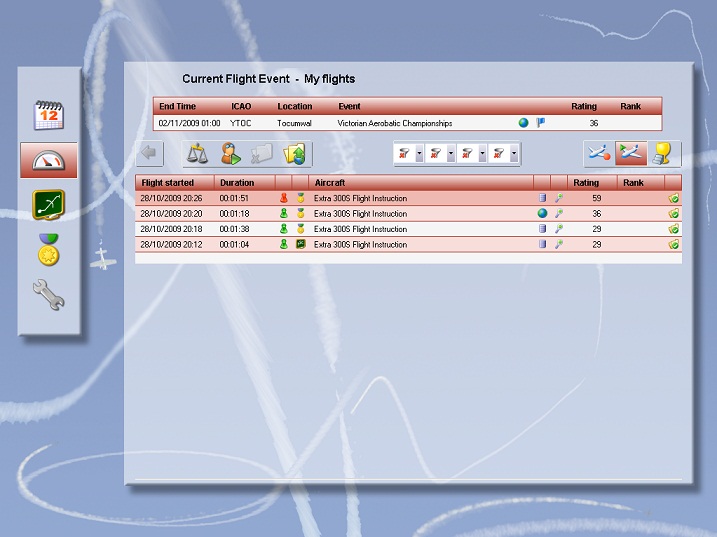Hone your skills during a full calendar of events which will each feature an aerobatic contest in two difficulty categories - 'Sportsman' or 'Advanced' (as well as ‘Display’ for flying airliners or jet aircraft for display). Study the aerobatic figures that need to be flown, put in some practice and - when you're confident enough - fly them in a competition situation.