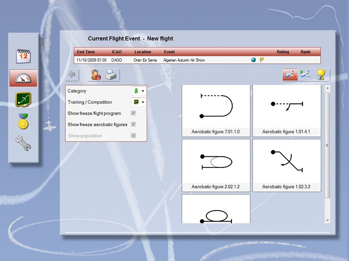 A set of Design Tools is included in Airshow Pilot - create your own aerobatic events in the Event Designer; create your own flight programs in the Flight Program Designer and even create your own airport populations in the Population Designer.